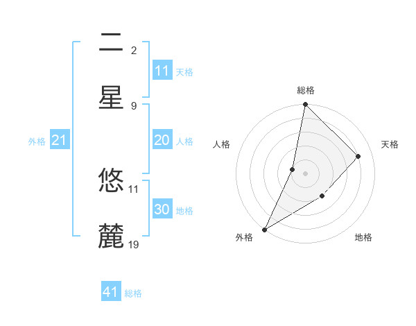 二星 悠麓さんの総格は41画の5点!