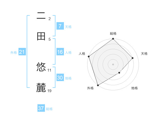 二田 悠麓さんを姓名の画数から五運を鑑定