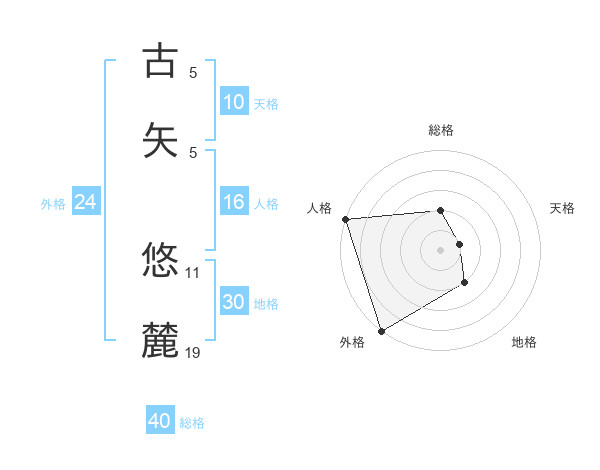 古矢 悠麓さんの外格は24画の5点!