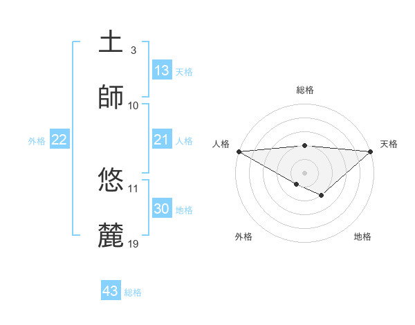 土師 悠麓さんを姓名の画数から五運を鑑定