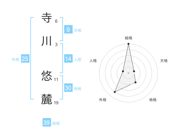 寺川 悠麓さんの総格は39画の5点!