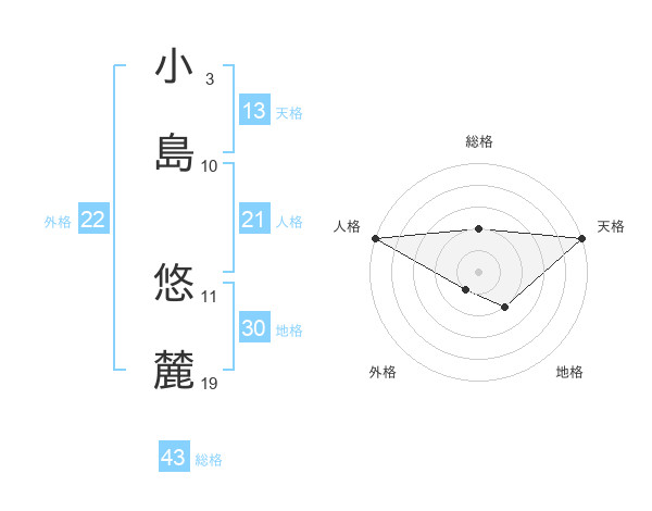 小島 悠麓さんを姓名の画数から五運を鑑定