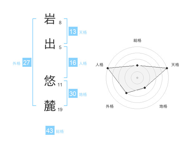 岩出 悠麓さんの天格は13画の5点!