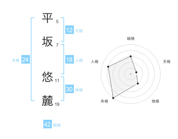 平坂 悠麓さんの総格は42画の3点!