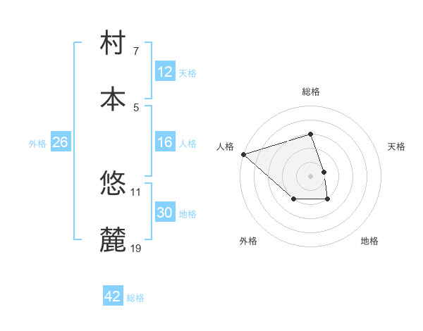 村本 悠麓さんを姓名の画数から五運を鑑定