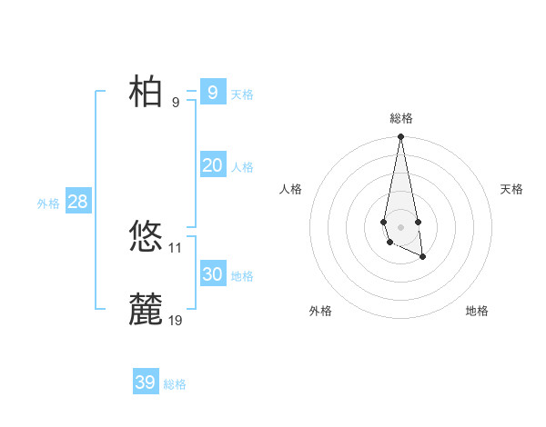 柏 悠麓さんの総格は39画の5点!