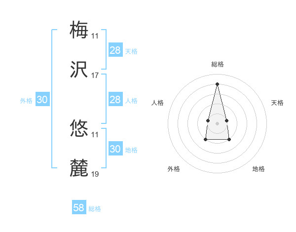 梅沢 悠麓さんの総格は58画の4点!