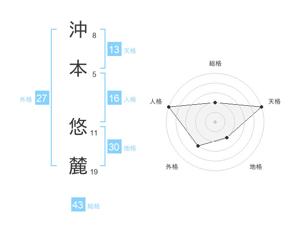沖本 悠麓さんの天格は13画の5点!