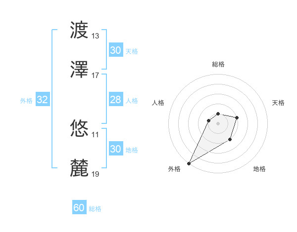 渡澤 悠麓さんの総格は60画の1点!