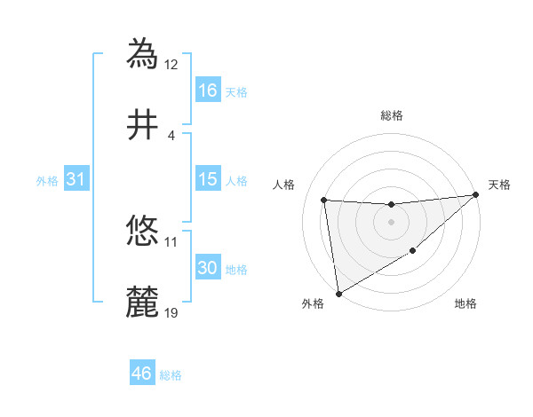 為井 悠麓さんを姓名の画数から五運を鑑定