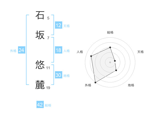 石坂 悠麓さんを姓名の画数から五運を鑑定