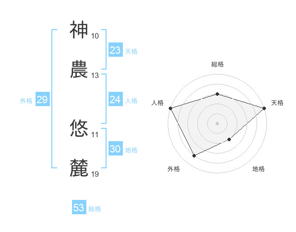 神農 悠麓さんの総格は53画の3点!