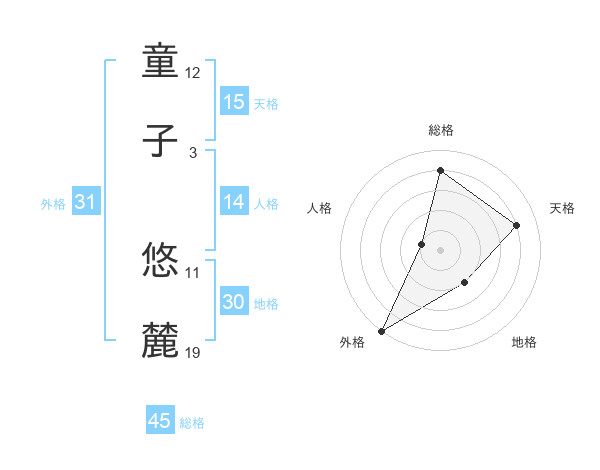 童子 悠麓さんの総格は45画の4点!