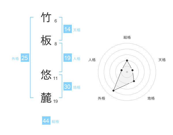竹板 悠麓さんを姓名の画数から五運を鑑定