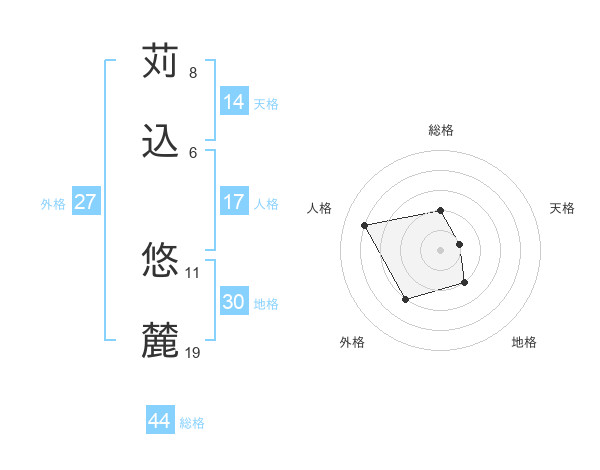 苅込 悠麓さんの総格は44画の2点!