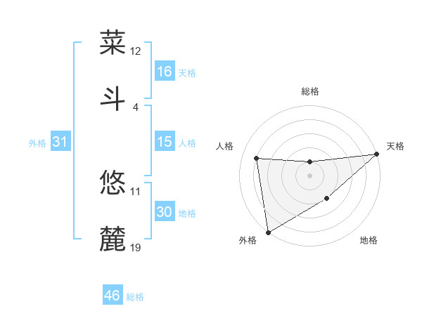 菜斗 悠麓さんの外格は31画の5点!