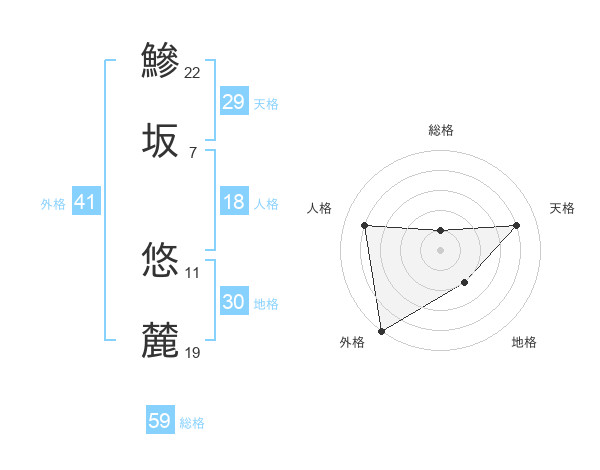 鰺坂 悠麓さんの総格は59画の1点!