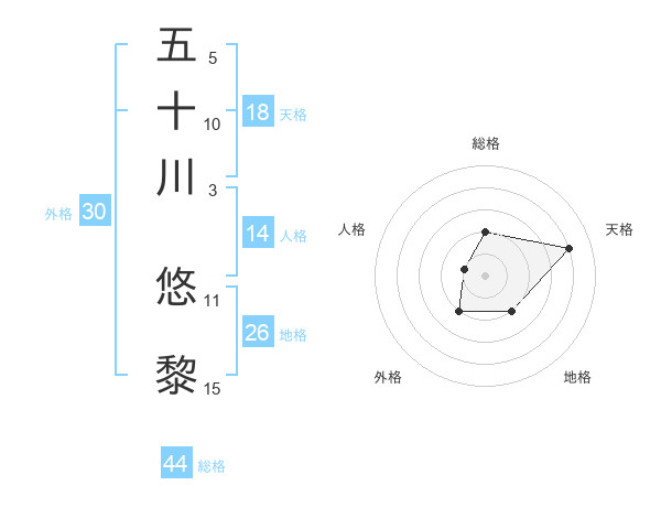 五十川 悠黎さんを姓名の画数から五運を鑑定