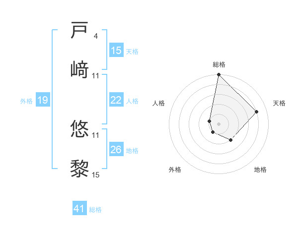 戸﨑 悠黎さんを姓名の画数から五運を鑑定