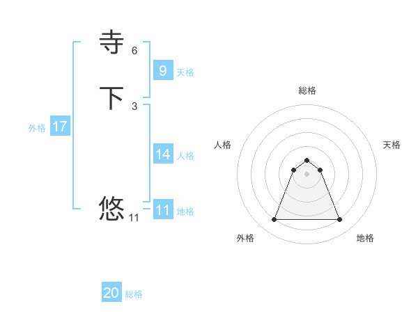 寺下 悠さんの総格は20画の1点!