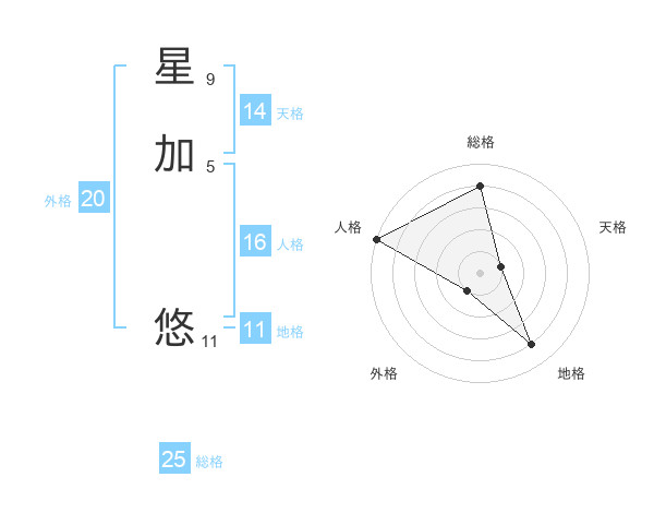 星加 悠さんの総格は25画の4点!