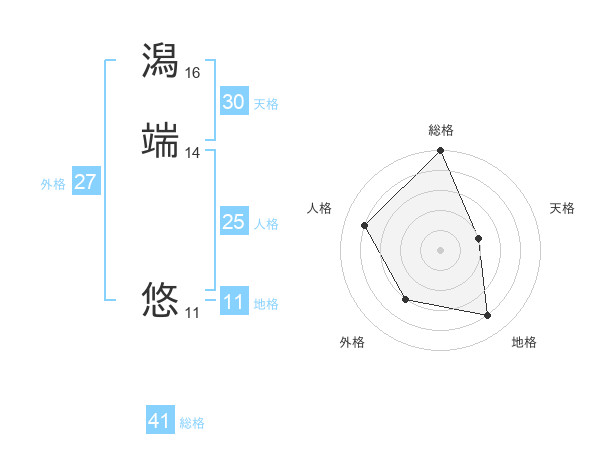 潟端 悠さんの総格は41画の5点!