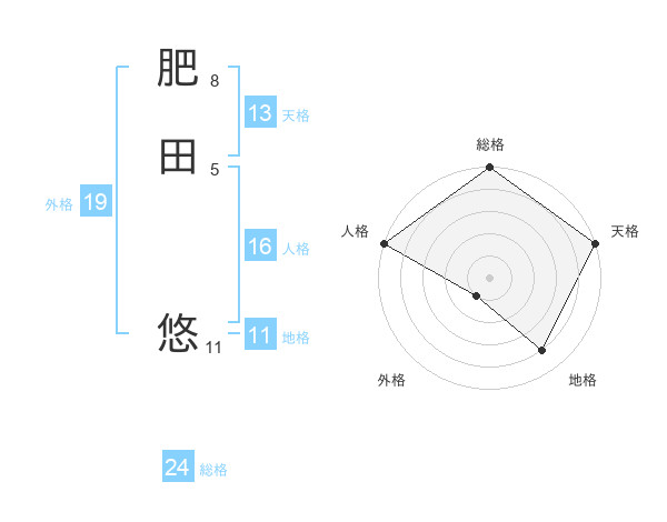 肥田 悠さんの天格は13画の5点!