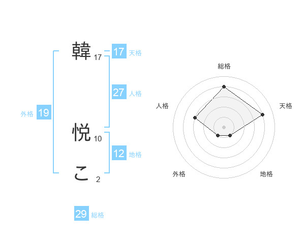 韓 悦こさんの総格は29画の4点!
