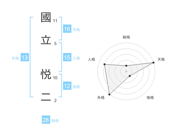 國立 悦二さんの外格は13画の5点!