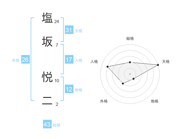 塩坂 悦二さんの外格は26画の2点!