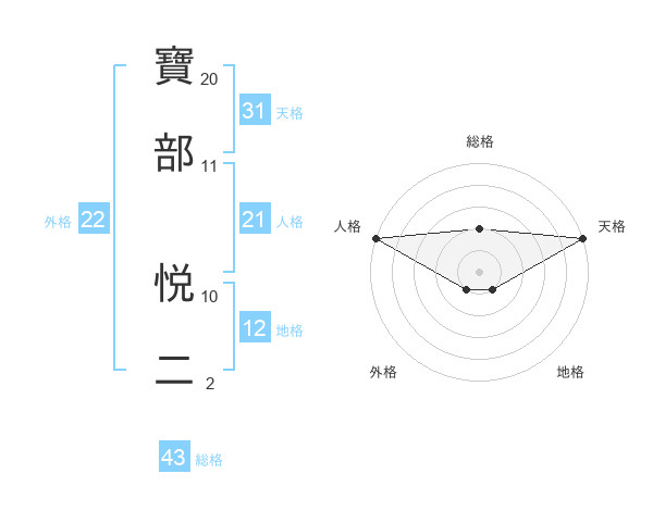 寶部 悦二さんを姓名の画数から五運を鑑定