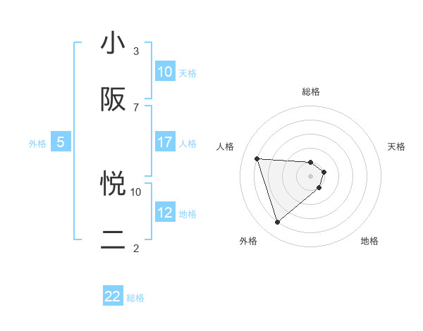 小阪 悦二さんの外格は5画の4点!