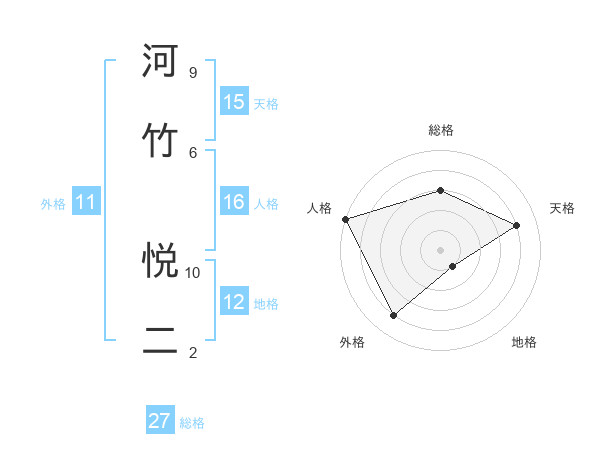 河竹 悦二さんの総格は27画の3点!
