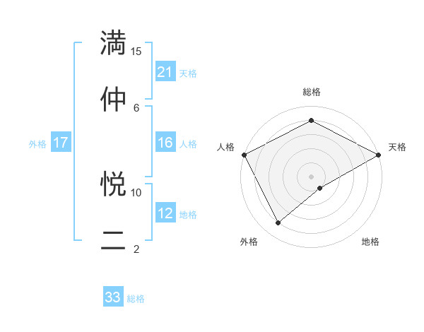 満仲 悦二さんの外格は17画の4点!