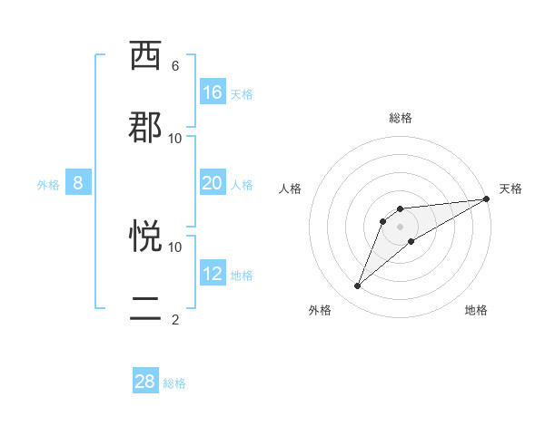 西郡 悦二さんを姓名の画数から五運を鑑定
