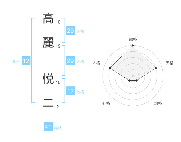 高麗 悦二さんの天格は29画の4点!