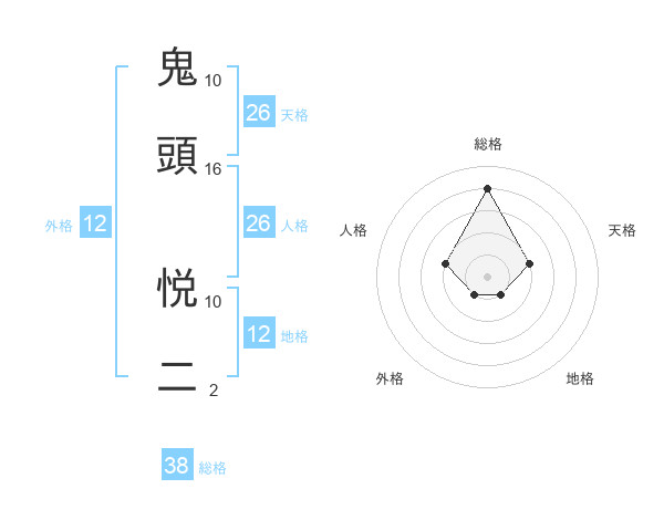 鬼頭 悦二さんの総格は38画の4点!
