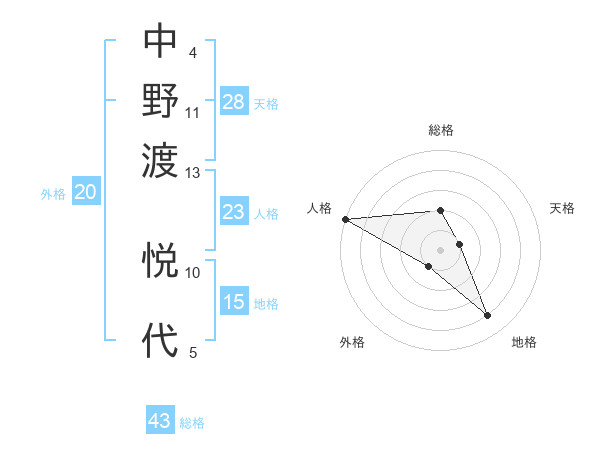 中野渡 悦代さんを姓名の画数から五運を鑑定