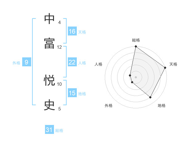 中富 悦史さんの総格は31画の5点!