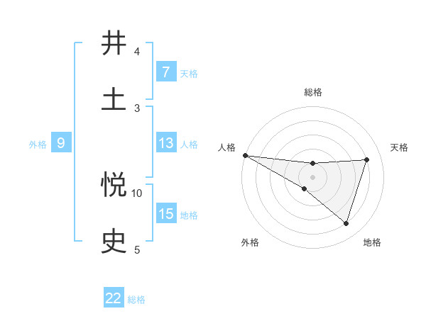 井土 悦史さんの総格は22画の1点!