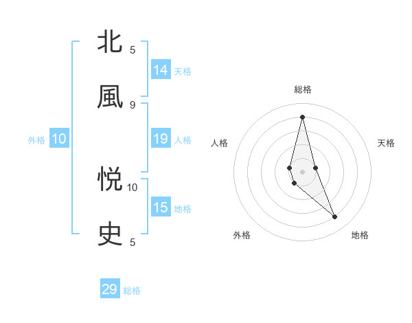 北風 悦史さんの総格は29画の4点!