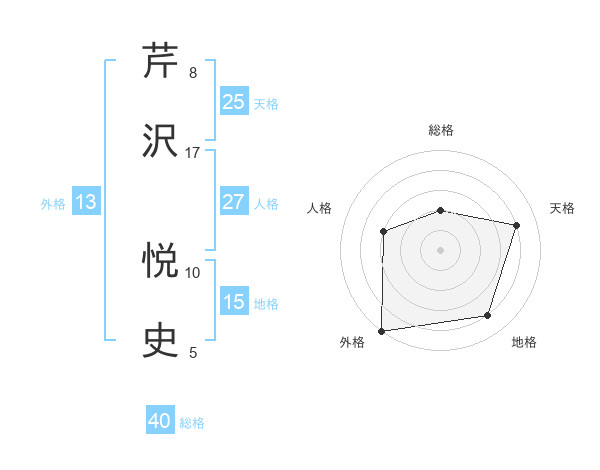 芹沢 悦史さんの総格は40画の2点!