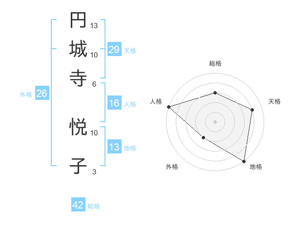 円城寺 悦子さんの総格は42画の3点!