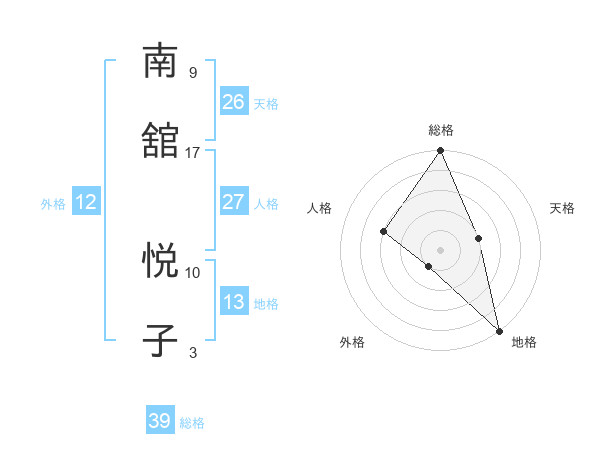 南舘 悦子さんの総格は39画の5点!