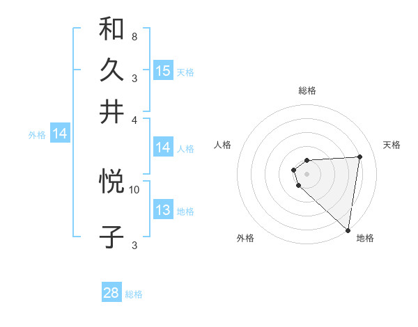 和久井 悦子さんの総格は28画の1点!