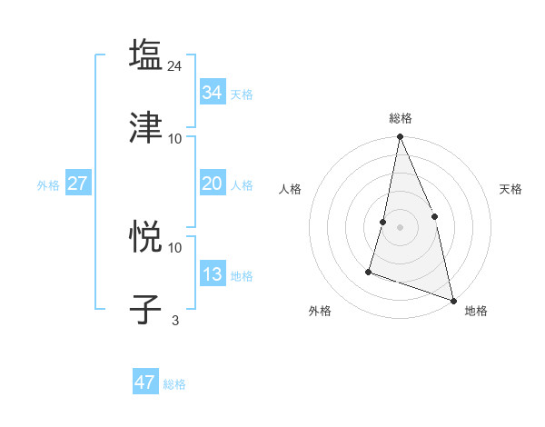 塩津 悦子さんを姓名の画数から五運を鑑定