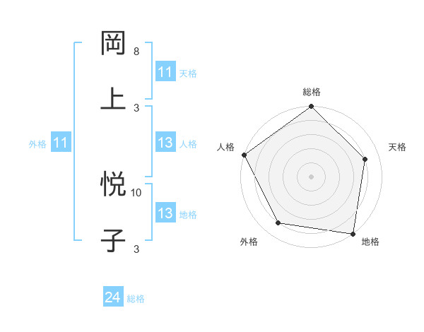 岡上 悦子さんを姓名の画数から五運を鑑定