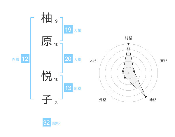 柚原 悦子さんを姓名の画数から五運を鑑定
