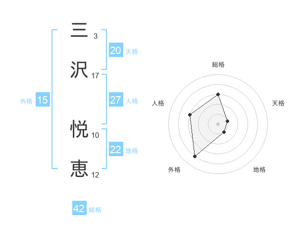 三沢 悦恵さんの総格は42画の3点!