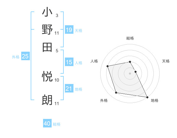 小野田 悦朗さんの天格は19画の1点!